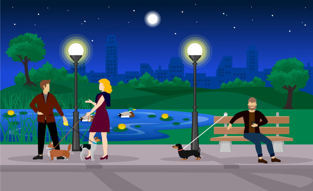 特に住宅地では、朝や昼間は人通りが多くても夜間になると人通りがなくなるような道が多いからです。